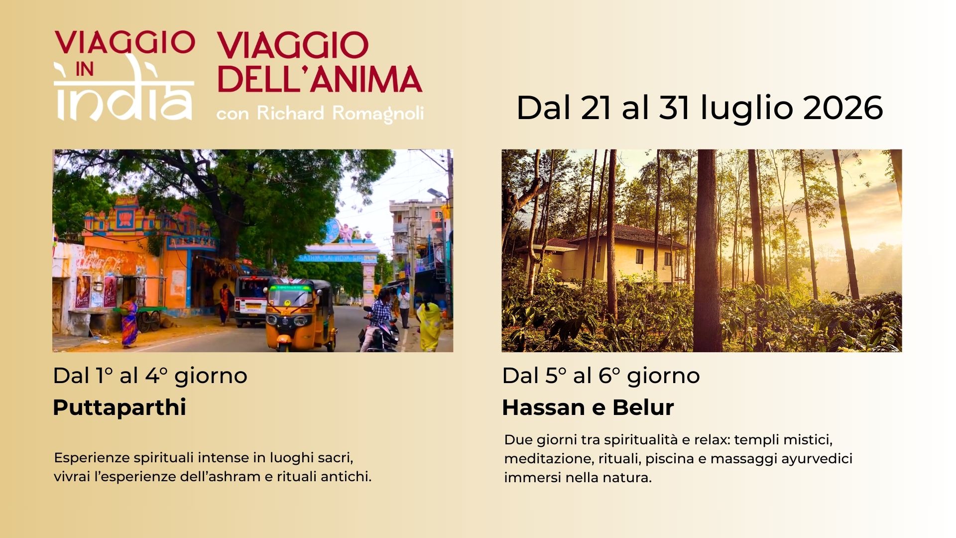 L’organizzazione di questo viaggio è improntata per farti vivere diverse esperienze e Richard ti guiderà in questo viaggio del corpo e dell’anima.